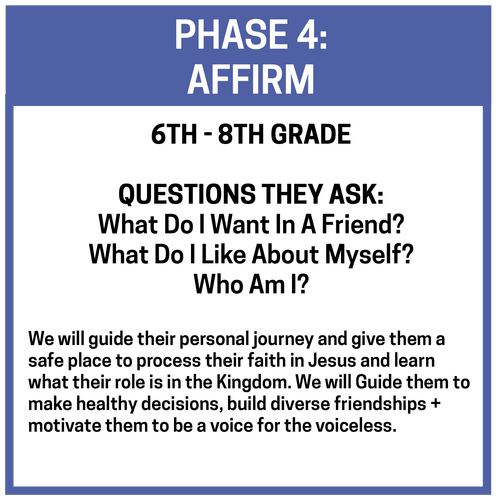 Every Sunday we gather together for a service designed specifically for students to enter into worship, learn to walk with Jesus, and have some fun with one another along the way, followed by age-specific groups where we break down the teaching and apply it to our lives.